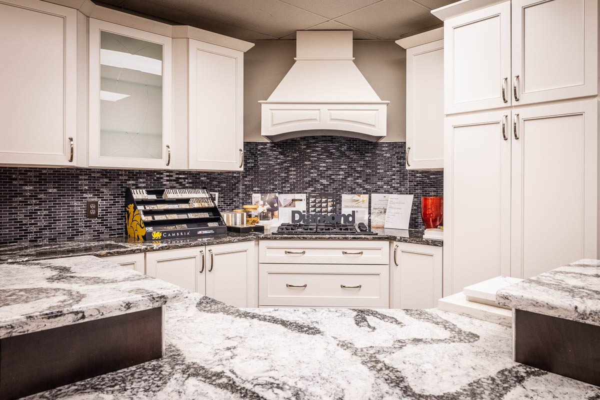 Stop by our showroom, which has a wide range of cabinetry, countertop, and hardware options.